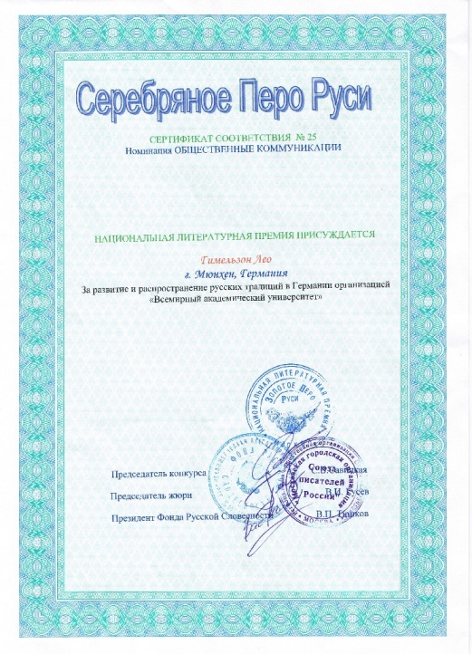 * Всемирный Академический Университет (ректор Лео Гимельзон).